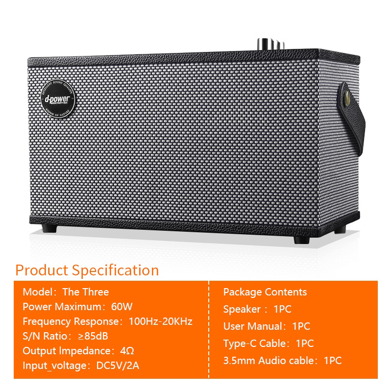กำลังขับ60W ลำโพงคู่ เสียงทรงพลัง ลำโพงบลูทูธสไตล์เรโทร ระบบเสียง Stereo 2.2CH กำลังขับ 60 รองรับไมโครโฟน มาในรูปสี่ทรงเหลี่ยมผืนผ้า ตัวลำโพงเป็นตู้ไม้ หุ้มภายนอกด้วยหนัง PU เรียบหรู รายละเอียดสินค้า สี น้ำตาล Walnut/สีดำ Matte Black